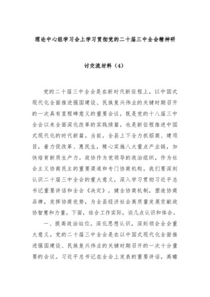 【七哥公文】2024年:理论中心组学习会上学习贯彻党的二十届三中全会精神研讨交流材料(4)+更多免费公文+VX:QiGeGongWen2024
