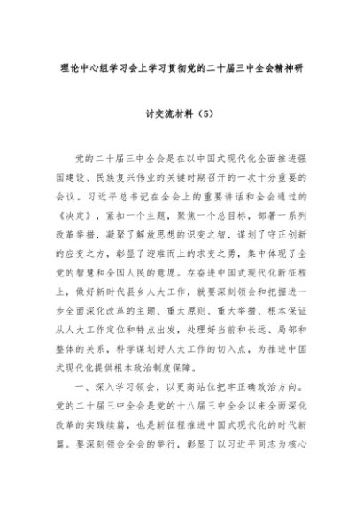 【七哥公文】2024年:理论中心组学习会上学习贯彻党的二十届三中全会精神研讨交流材料(5)+更多免费公文+VX:QiGeGongWen2024