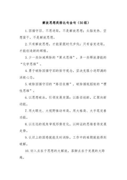 【七哥公文】2024年:解放思想类排比句金句(50组)+更多免费公文+VX:QiGeGongWen2024