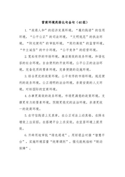 / 【七哥公文】2024年:营商环境类排比句金句(40组)+更多免费公文+VX:QiGeGongWen2024