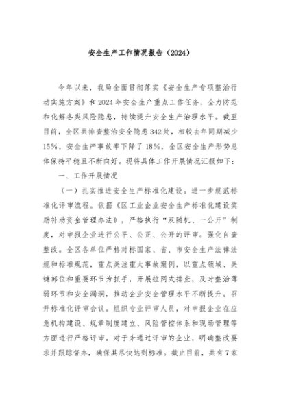 / 【七哥公文】2024年:安全生产工作情况报告(2024)+更多免费公文+VX:QiGeGongWen2024