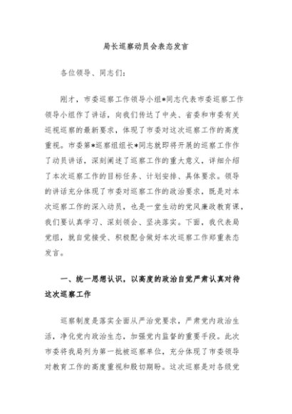 / 【七哥公文】2024年:局长巡察动员会表态发言+更多免费公文+VX:QiGeGongWen2024