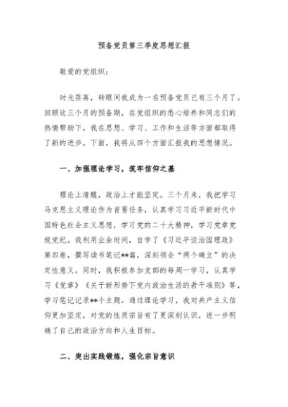 / 【七哥公文】2024年:预备党员第三季度思想汇报+更多免费公文+VX:QiGeGongWen2024