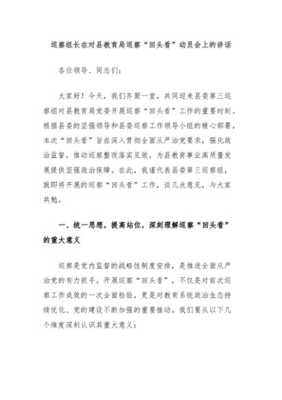 / 【七哥公文】2024年:巡察组长在对县教育局巡察“回头看”动员会上的讲话+更多免费公文+VX:QiGeGongWen2024
