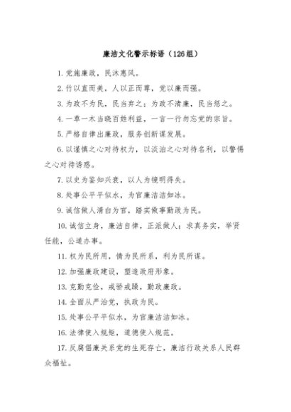 / 【七哥公文】2024年:廉洁文化警示标语(126组)+更多免费公文+VX:QiGeGongWen2024