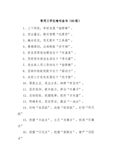 / 【七哥公文】2024年:常用三字比喻句金句(60组)+更多免费公文+VX:QiGeGongWen2024