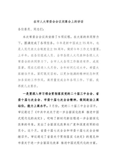 / 【七哥公文】2024年:在市人大常委会会议闭幕会上的讲话+更多免费公文+VX:QiGeGongWen2024