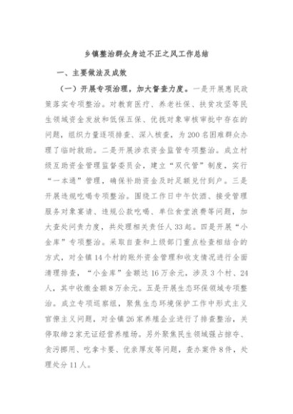 / 【七哥公文】2024年:乡镇整治群众身边不正之风工作总结+更多免费公文+VX:QiGeGongWen2024