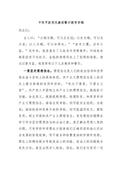 / 【七哥公文】2024年:中秋节前党风廉政警示教育讲稿+更多免费公文+VX:QiGeGongWen2024