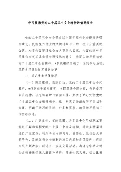 / 【七哥公文】2024年:学习贯彻党的二十届三中全会精神的情况报告+更多免费公文+VX:QiGeGongWen2024