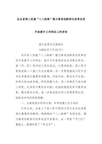 【七哥公文】2024年:在全省深入实施“八八战略”强力推进创新深化改革攻坚开放提升工作例会上的讲话+更多免费公文+VX:QiGeGongWen2024