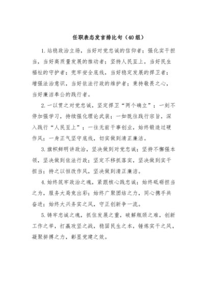 / 【七哥公文】2024年:任职表态发言排比句(40组)+更多免费公文+VX:QiGeGongWen2024
