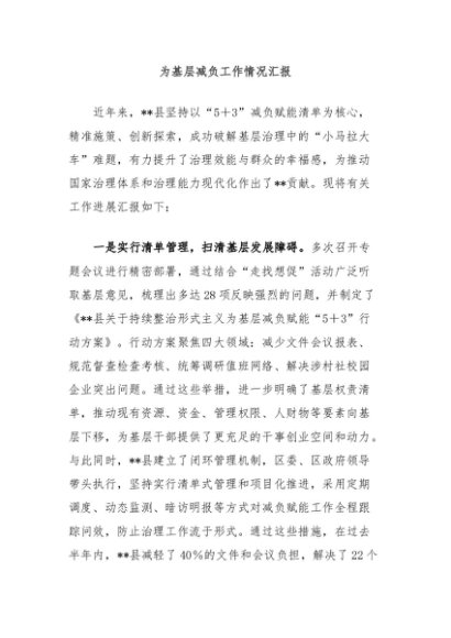 / 【七哥公文】2024年:为基层减负工作情况汇报+更多免费公文+VX:QiGeGongWen2024