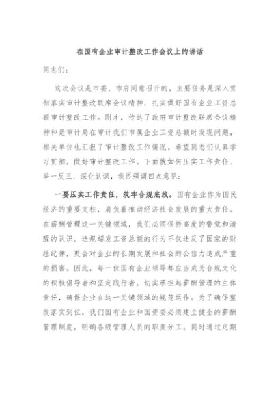 / 【七哥公文】2024年:在国有企业审计整改工作会议上的讲话+更多免费公文+VX:QiGeGongWen2024