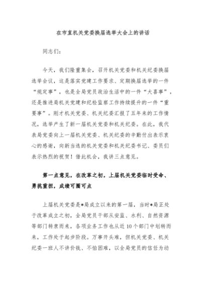 / 【七哥公文】2024年:在市直机关党委换届选举大会上的讲话+更多免费公文+VX:QiGeGongWen2024