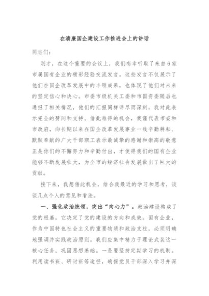 / 【七哥公文】2024年:在清廉国企建设工作推进会上的讲话+更多免费公文+VX:QiGeGongWen2024