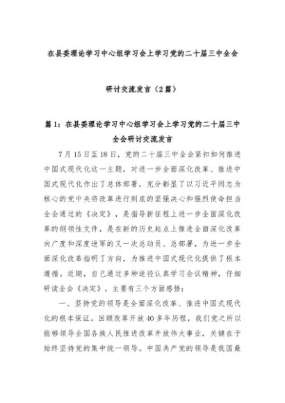 【七哥公文】2024年:(2篇)在县委理论学习中心组学习会上学习党的二十届三中全会研讨交流发言+更多免费公文+VX:QiGeGongWen2024