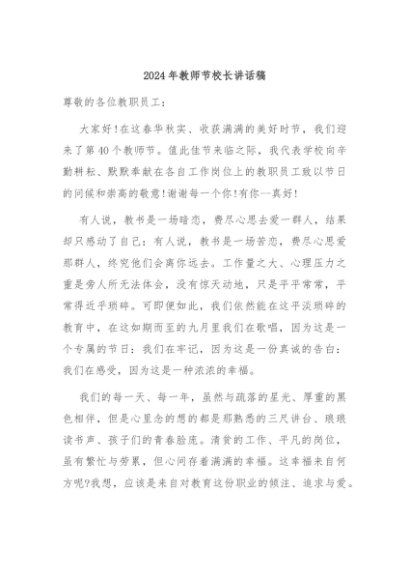 【七哥公文】2024年:2024年教师节校长讲话稿+更多免费公文+VX:QiGeGongWen2024