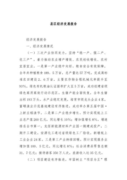 【七哥公文】2024年:县区经济发展报告+更多免费公文+VX:QiGeGongWen2024