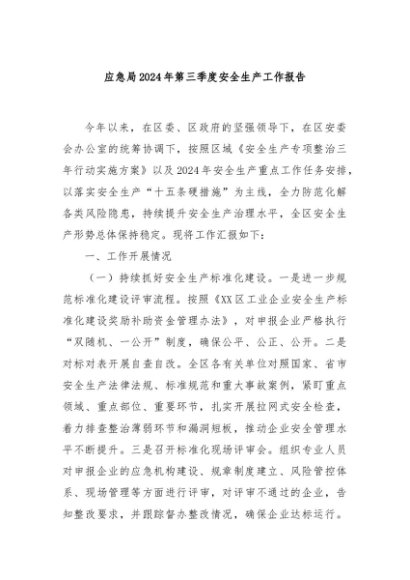 / 【七哥公文】2024年:应急局2024年第三季度安全生产工作报告+更多免费公文+VX:QiGeGongWen2024