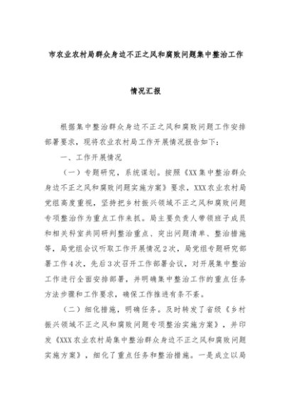 【七哥公文】2024年:市农业农村局群众身边不正之风和腐败问题集中整治工作情况汇报+更多免费公文+VX:QiGeGongWen2024