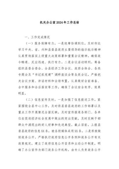 / 【七哥公文】2024年:机关办公室2024年工作总结+更多免费公文+VX:QiGeGongWen2024
