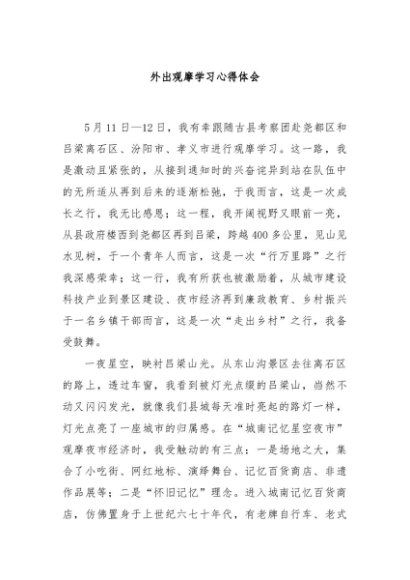 【七哥公文】2024年:外出观摩学习心得体会+更多免费公文+VX:QiGeGongWen2024