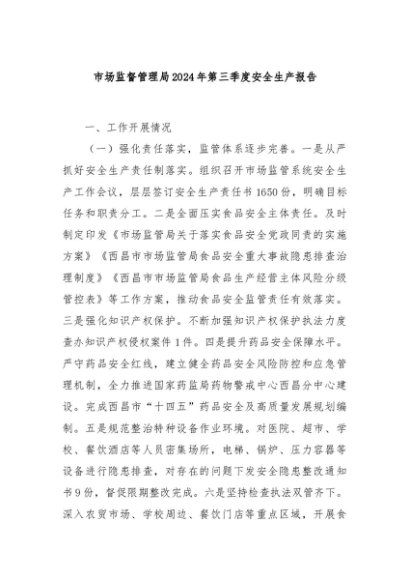 / 【七哥公文】2024年:市场监督管理局2024年第三季度安全生产报告+更多免费公文+VX:QiGeGongWen2024
