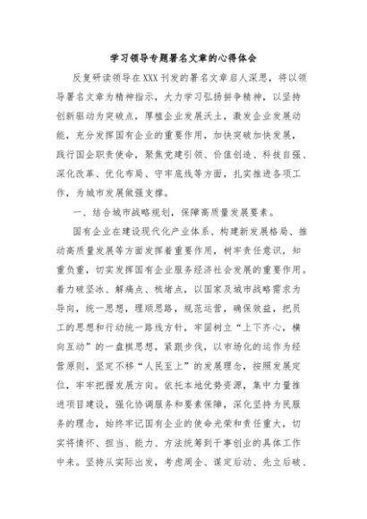 【七哥公文】2024年:学习领导专题署名文章的心得体会+更多免费公文+VX:QiGeGongWen2024