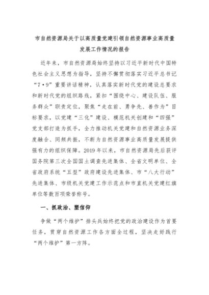 【七哥公文】2024年:市自然资源局关于以高质量党建引领自然资源事业高质量发展工作情况的报告+更多免费公文+VX:QiGeGongWen2024