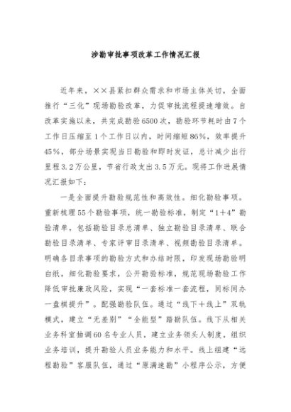 / 【七哥公文】2024年:涉勘审批事项改革工作情况汇报+更多免费公文+VX:QiGeGongWen2024