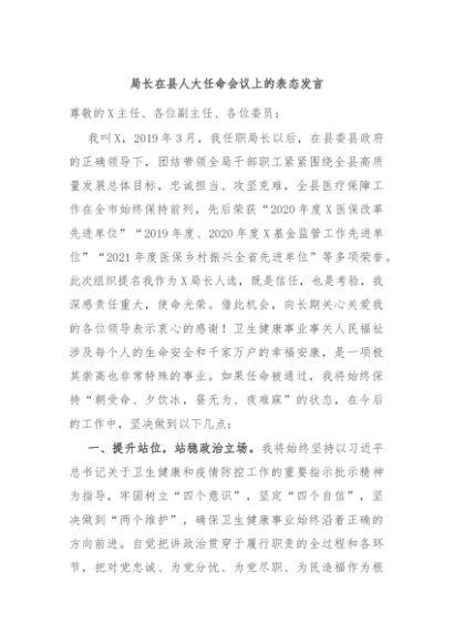/ 【七哥公文】2024年:局长在县人大任命会议上的表态发言+更多免费公文+VX:QiGeGongWen2024