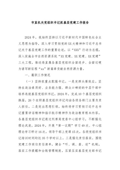 / 【七哥公文】2024年:市直机关党组织书记抓基层党建工作报告+更多免费公文+VX:QiGeGongWen2024