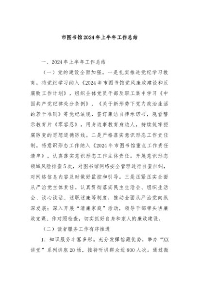 / 【七哥公文】2024年:市图书馆2024年上半年工作总结+更多免费公文+VX:QiGeGongWen2024