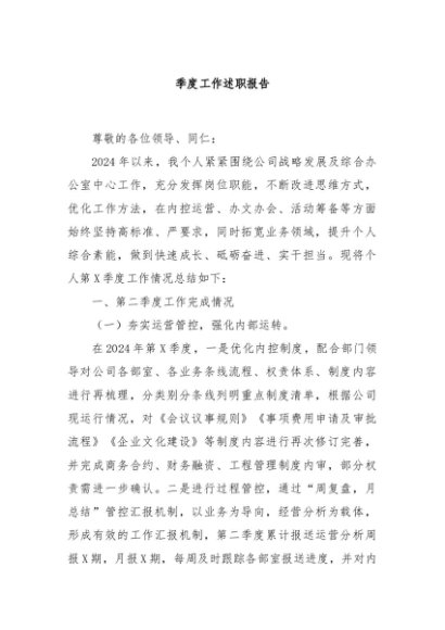 / 【七哥公文】2024年:季度工作述职报告+更多免费公文+VX:QiGeGongWen2024