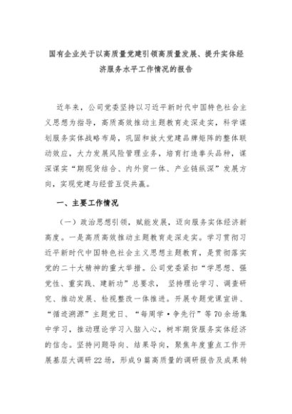 【七哥公文】2024年:国有企业关于以高质量党建引领高质量发展、提升实体经济服务水平工作情况的报告+更多免费公文+VX:QiGeGongWen2024