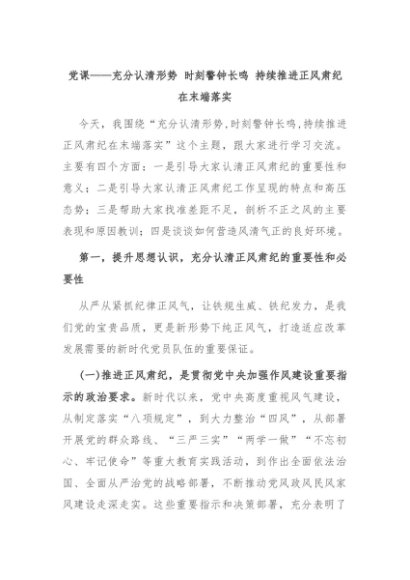 【七哥公文】2024年:党课——充分认清形势 时刻警钟长鸣 持续推进正风肃纪在末端落实+更多免费公文+VX:QiGeGongWen2024