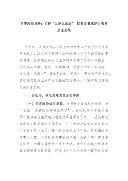 【七哥公文】2024年:党建经验材料:坚持“三讲三推进” 以高质量党建引领高质量发展+更多免费公文+VX:QiGeGongWen2024