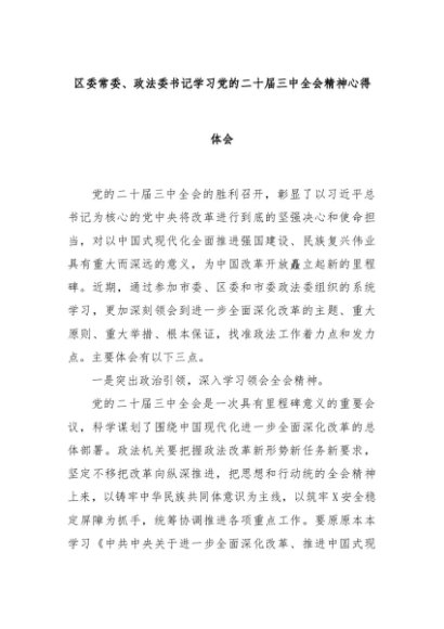 【七哥公文】2024年:区委常委、政法委书记学习党的二十届三中全会精神心得体会+更多免费公文+VX:QiGeGongWen2024