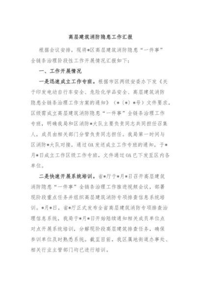 / 【七哥公文】2024年:高层建筑消防隐患工作汇报+更多免费公文+VX:QiGeGongWen2024