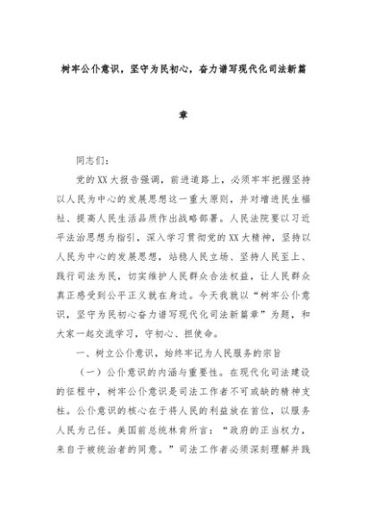 【七哥公文】2024年:树牢公仆意识,坚守为民初心,奋力谱写现代化司法新篇章+更多免费公文+VX:QiGeGongWen2024