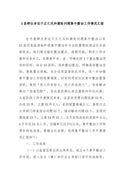 【七哥公文】2024年:X县群众身边不正之风和腐败问题集中整治工作情况汇报+更多免费公文+VX:QiGeGongWen2024