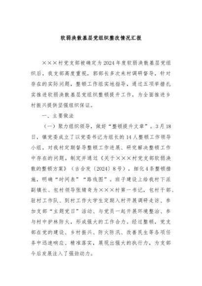 / 【七哥公文】2024年:软弱涣散基层党组织整改情况汇报+更多免费公文+VX:QiGeGongWen2024