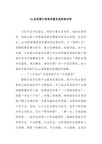 / 【七哥公文】2024年:Xx县党建引领高质量发展经验材料+更多免费公文+VX:QiGeGongWen2024