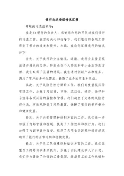 【七哥公文】2024年:银行向巡查组情况汇报+更多免费公文+VX:QiGeGongWen2024