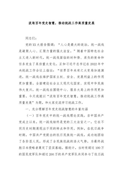 / 【七哥公文】2024年:汲取百年党史智慧,推动统战工作高质量发展+更多免费公文+VX:QiGeGongWen2024