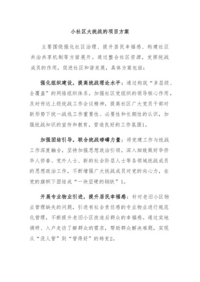 / 【七哥公文】2024年:小社区大统战的项目方案+更多免费公文+VX:QiGeGongWen2024