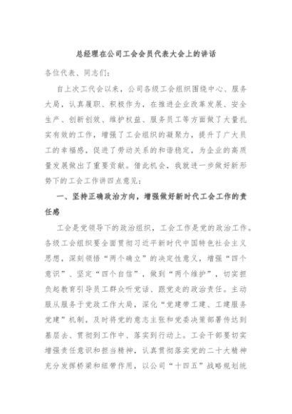 / 【七哥公文】2024年:总经理在公司工会会员代表大会上的讲话+更多免费公文+VX:QiGeGongWen2024