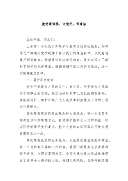 【七哥公文】2024年:微党课讲稿:守党纪,保廉洁+更多免费公文+VX:QiGeGongWen2024