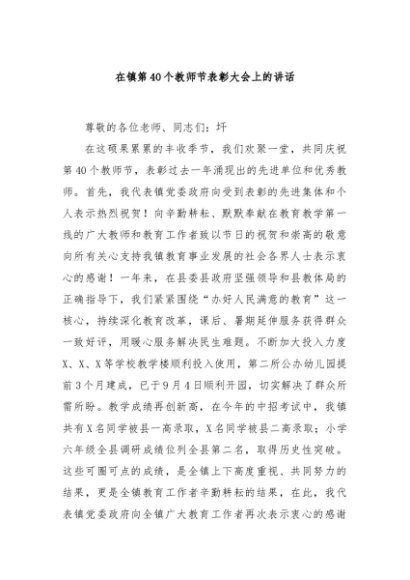 / 【七哥公文】2024年:在镇第40个教师节表彰大会上的讲话+更多免费公文+VX:QiGeGongWen2024